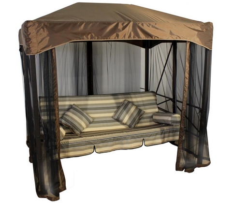Мы хотим предложить вам приобрести комплект, предназначенный для четырёхместных качелей-шатра Монреаль. Данный комплект выполнен в коричневом цвете, он состоит из тента-крыши и противомоскитной сетки. Предназначен данный комплект для качелей, ширина которых составляет 160 см, длина 235 см, высота 220 см. Изготовлен тент из такого материала, как синтепон.