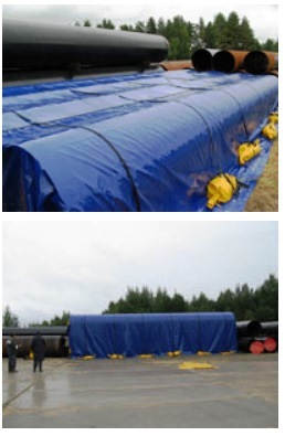 Краткое описание «Тент укрытие для труб панцирь из пожаростойкой ткани ПВХ Г1 650 г/м2»